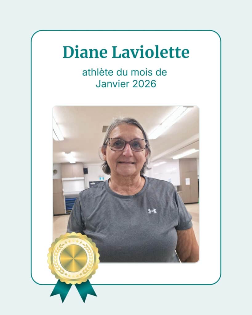 En janvier, nous mettons en lumière Diane, une participante reconnue pour son engagement constant et sa discipline exemplaire. Toujours présente aux séances, elle s’investit pleinement et donne le meilleur d’elle-même, peu importe le contexte.